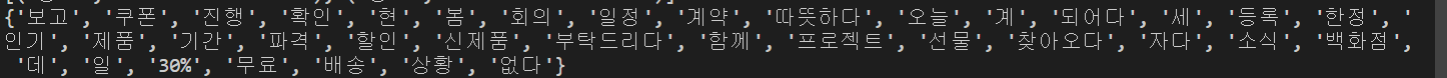 self.words.add(word) #출현한 단어를 words 집합에 추가